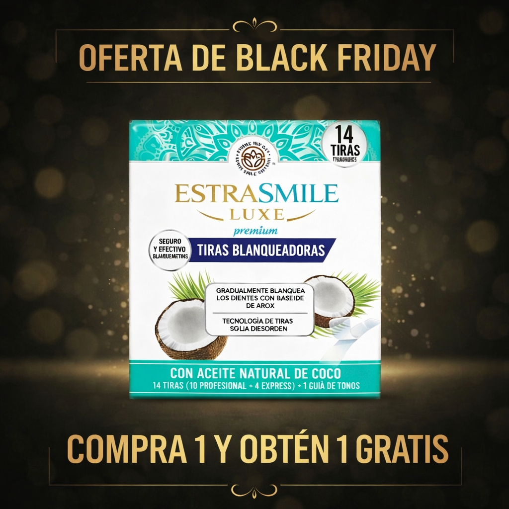 EstraSmile LUXE™ ofrece nuestra oferta más agresiva del año: compre un kit de blanqueamiento dental de 7 días y llévese el segundo totalmente gratis.Y lo respaldamos con nuestra garantía de devolución del dinero de 90 días.¿Por qué? Porque sabemos que funciona. Verá los resultados después de la primera tira. Podemos permitirnos estar tan seguros.